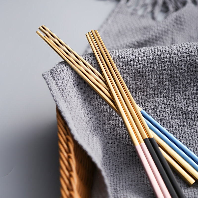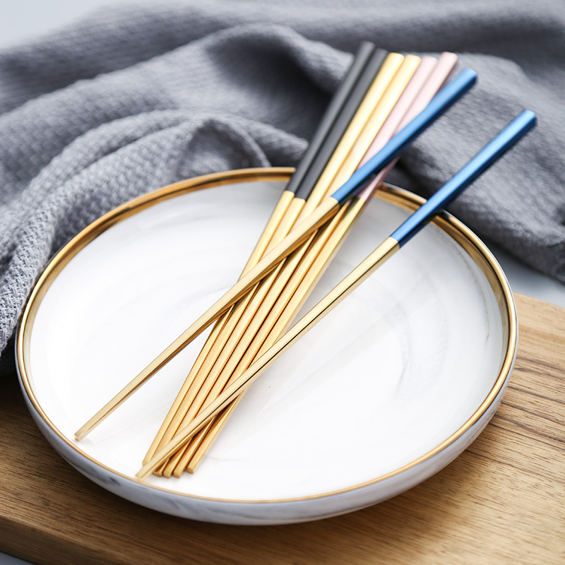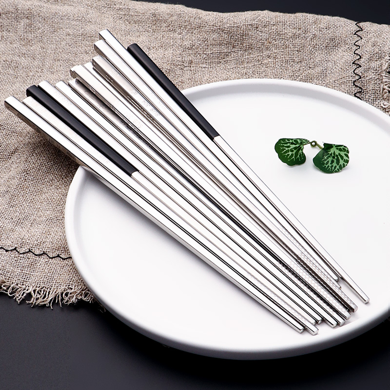 Ink color Silver European household 304 stainless steel chopsticks square non-slip high temperature resistant 1 bimetallic alloy chopsticks