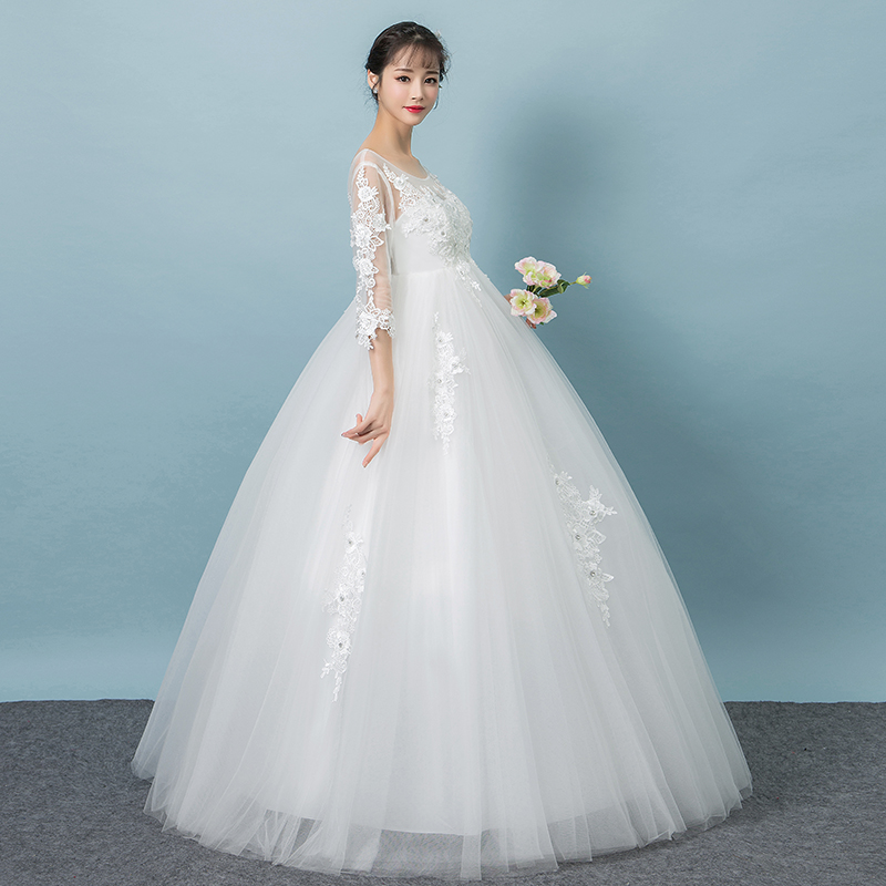 White Pregnant Woman Wedding Dress Gown 2021 New New Fat Mm Bridal High Waist Large Size Cover for a Long and Long sleeves Ziddy