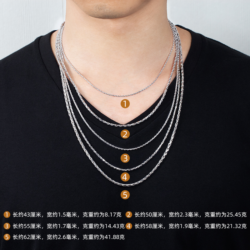 Platinum rope chain weighs about 8 68 grams long about 45 cm thick about 15 mm Platinum rope chain weighs about 31 18 grams long about 59 cm thick about 2 3 mm Platinum rope chain weighs about 31 18 grams long about 59 cm thick about 2 3 mm Platinum rope chain weighs about 31 18 grams long about 59 cm thick about 2 3 mm Platinum rope chain weighs about 31 18 grams long about