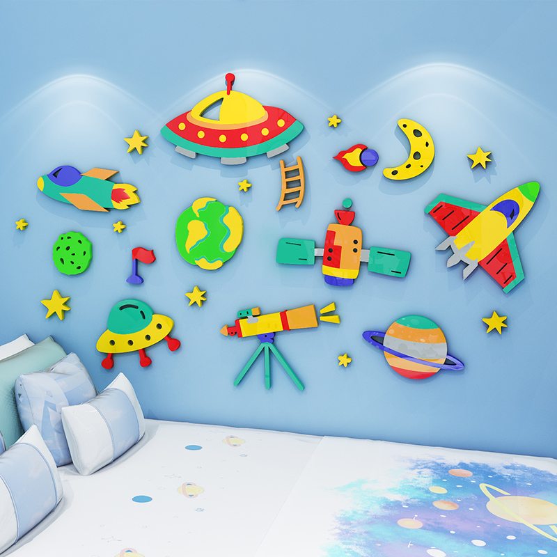 Space Themed Decoration 3d Stereo Acrylic Sticker Environment Creation Nursery School Classroom Scientific Area Wall Placement