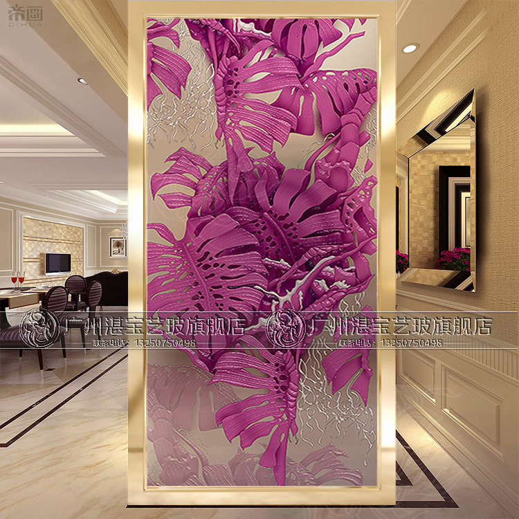 Development of art glass Xuanguan gangway background wall screen partition living room modern frosted light transmission modern plantain leaf