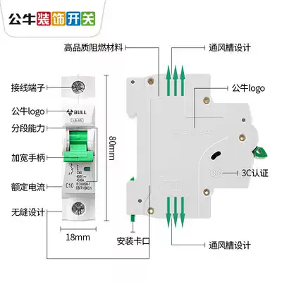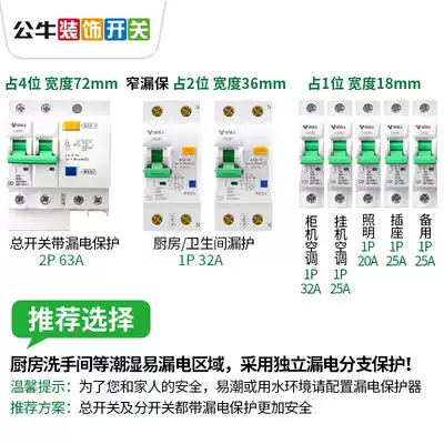 Bull 1p n air switch with leakage protector Household small circuit breaker main switch leakage protection air open 220v
