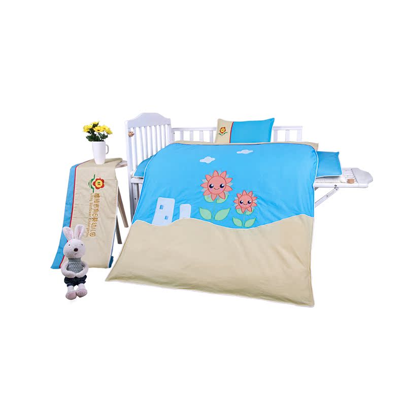 Long crown baby Kindergarten cloth stickup embroidered quilted with three sets of pure cotton flower bedding