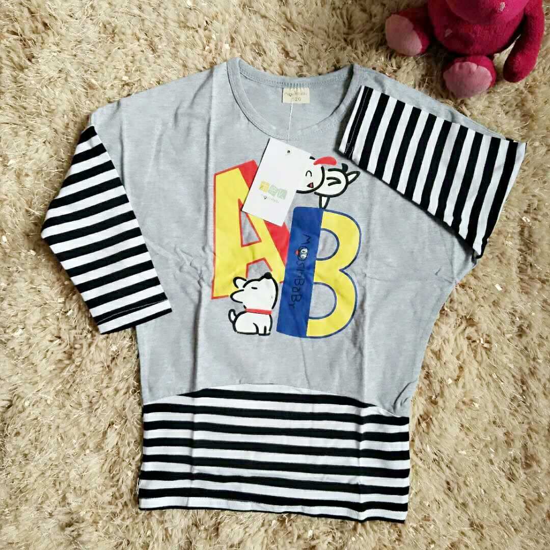 Pure cotton girl cute cartoon bat sleeve long sleeve T-shirt