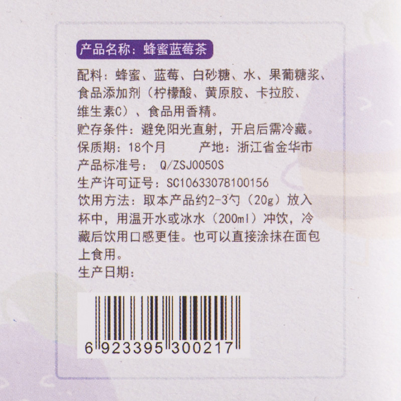 Honey blueberry white sugar water citric acid, etc.