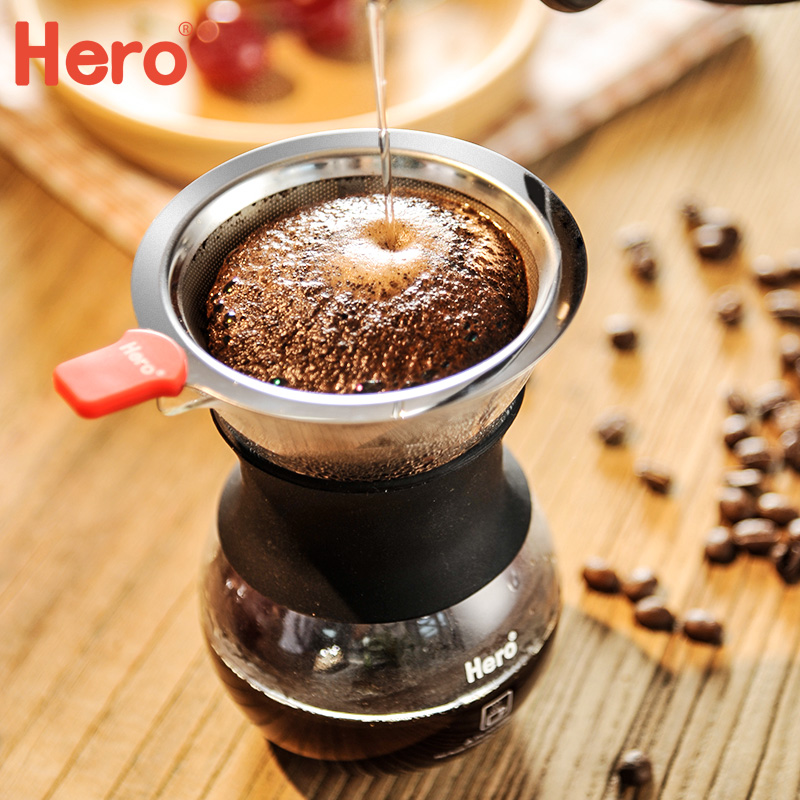 Hero hand-flush coffee pot Hand-flush integrated pot Stainless steel filter glass sharing pot Drip coffee hand-flush pot