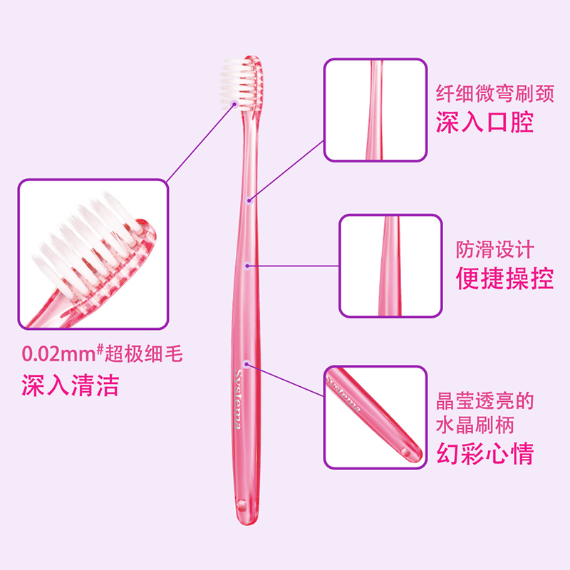 Lion king fine tooth cleaning crystal color toothbrush Small head toothbrush Soft hair fine hair tooth protection gingival protection Crystal brush handle 1 set×8 pcs