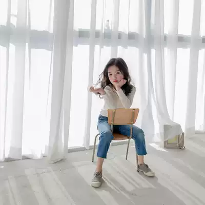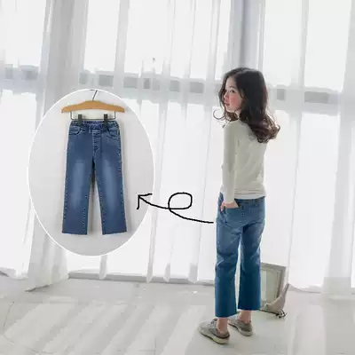 Girls jeans autumn 2021 new foreign school children's stretch pants nine straight pants children's wide leg pants