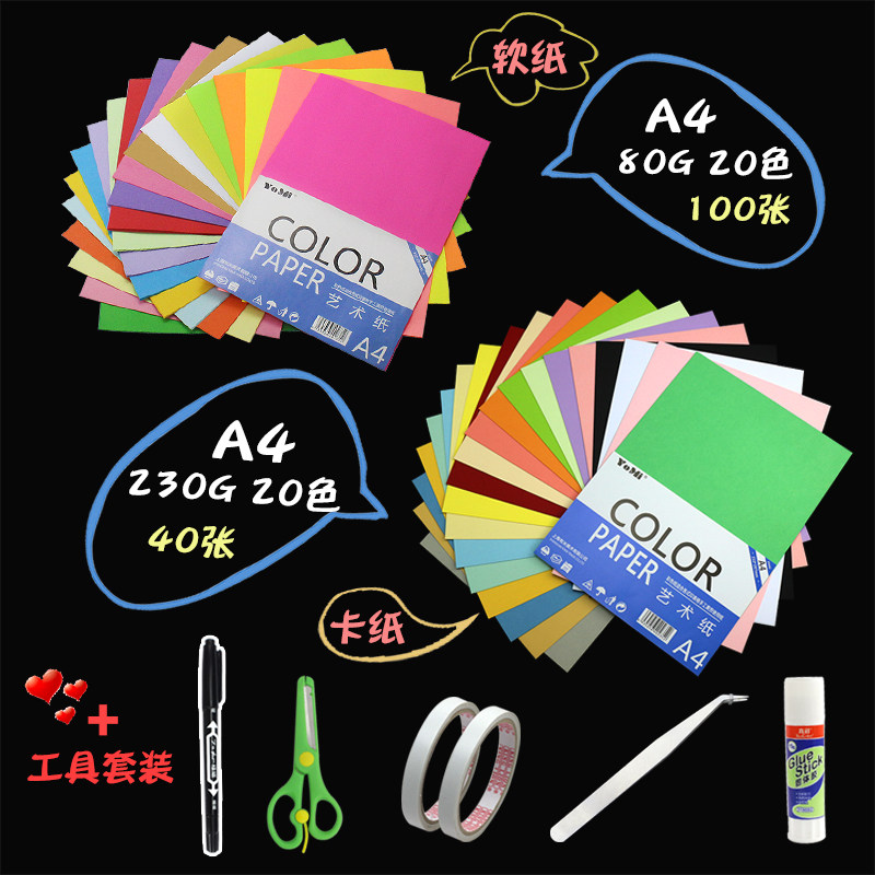 A4 color soft and hard color paper 230gA4 color cardboard 80g color paper children's handmade paper origami material