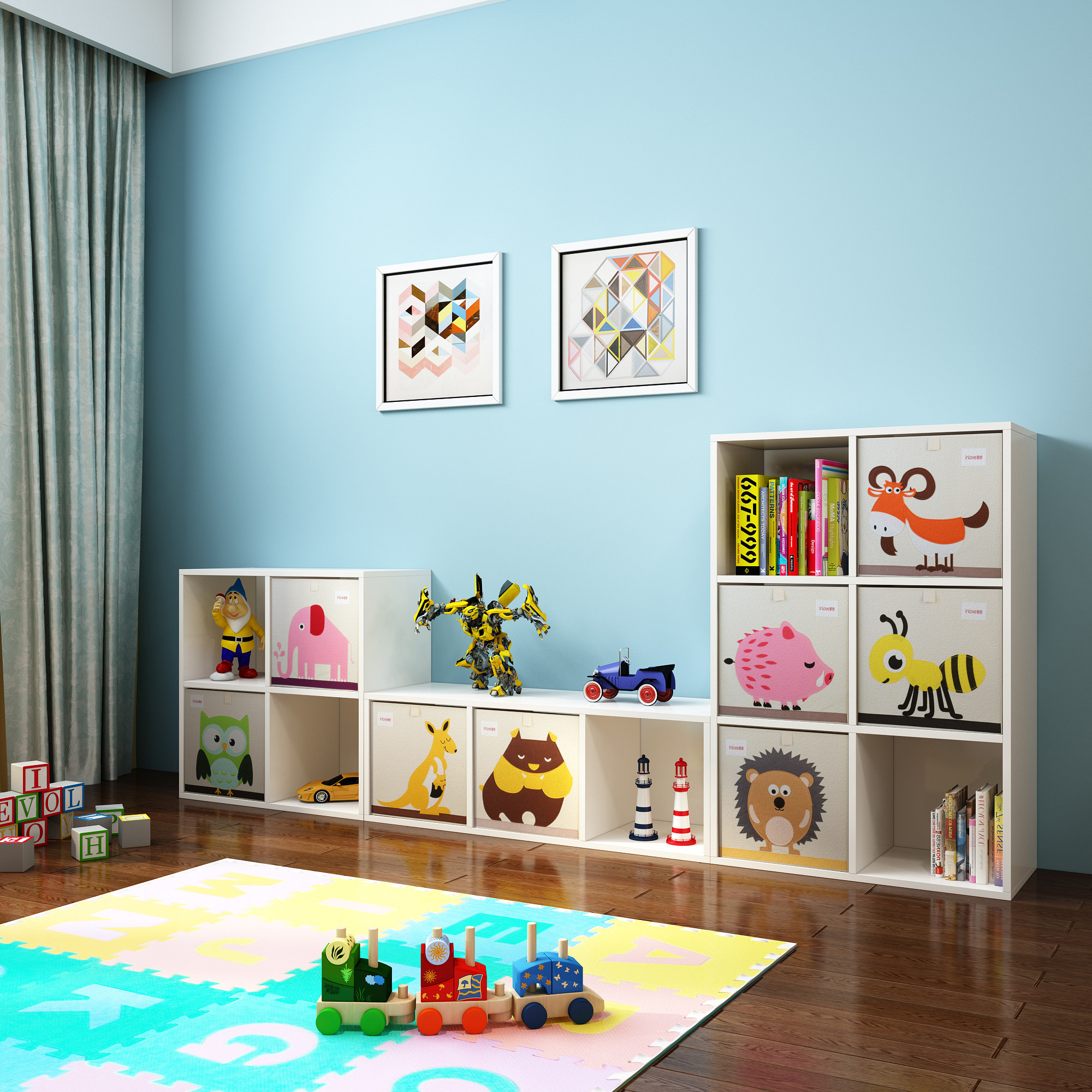 Comparable bear children floor-to-ceiling bookshelf Solid wood children's toy storage cabinet Storage cabinet shelf Bedroom finishing cabinet