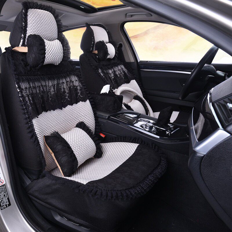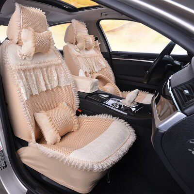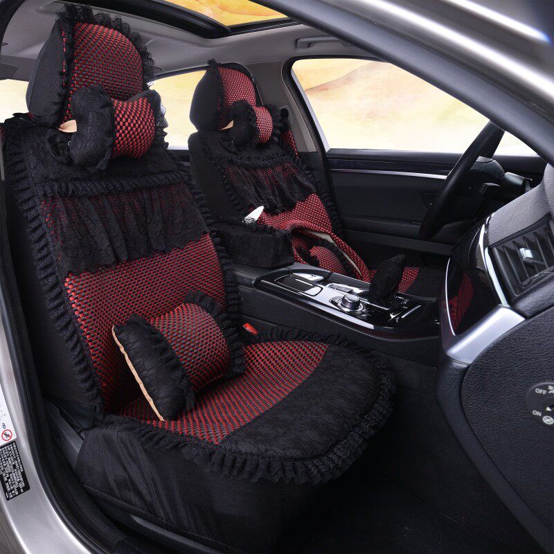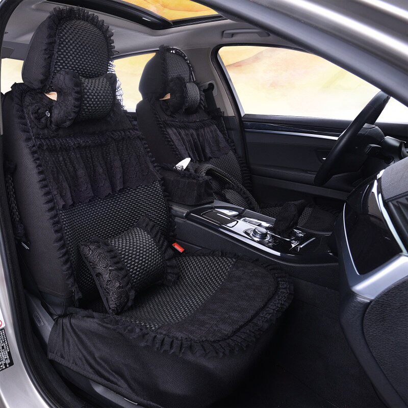 Female Car Cushions All Season Universal Summer Ice Silk Car Cushions Full Bag Cute Lace Cushion Four Seasons Cushion