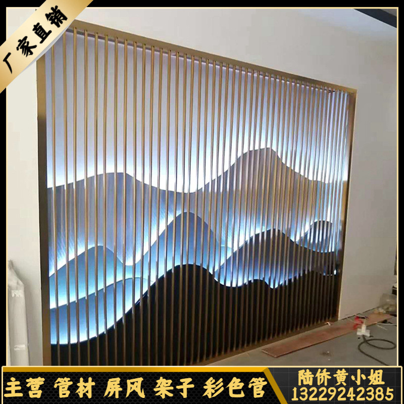 Custom Stainless Steel Screen Partition Hotel Lobby Decoration Metal Ancient Bronze Color Grilles Landscape Painting Fake Mountain Background Wall