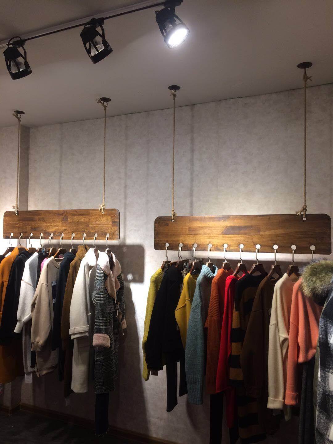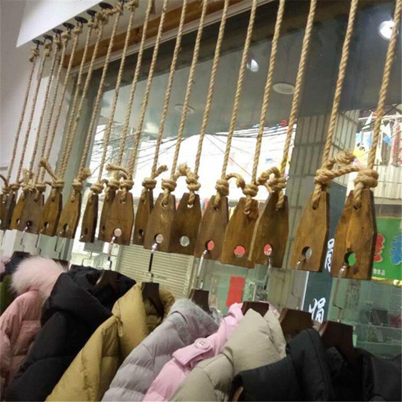 Clothing store ceiling hanging ring hanger solid wood window display stand hemp rope hanging shop decoration hanger