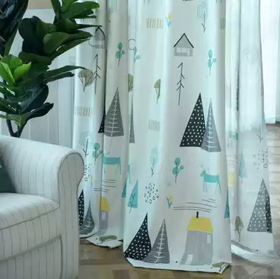 Nordic small trees-green curtains Nordic trees-gray and black curtains Nordic trees-green gauze curtains Nordic trees-gray and black gauze curtains