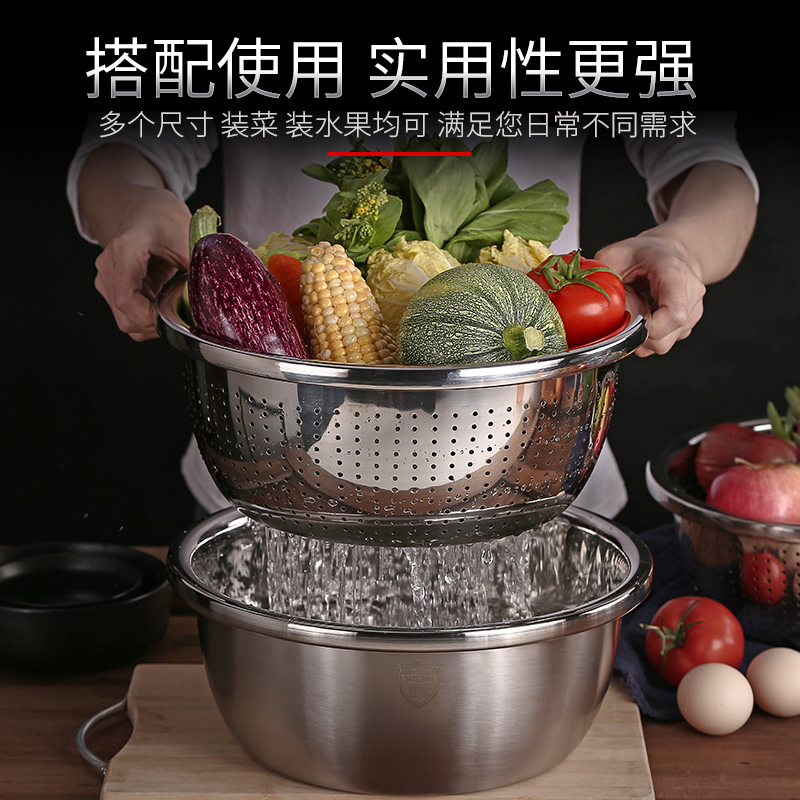 304 stainless steel washing basin drain basket kitchen household basket Amoy rice sieve fruit basket Amoy vegetable drain basin