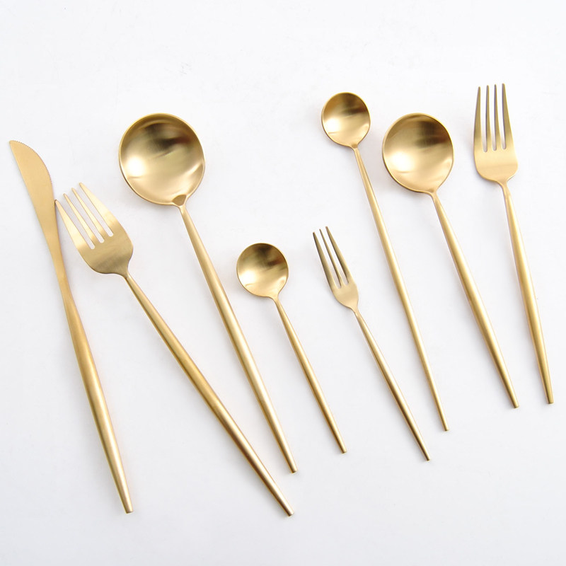 Golden Steak Knife Golden Main Dining Fork Gold Main Dining Spoon Golden Sweet Spoon Golden Sweet Spoon Golden Fruit Fork Gold Long Handle Spoon Golden Coffee Spoon Black Steak Knife Black Main Dining Fork