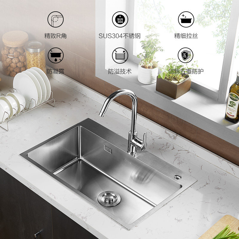 Jiumu official flagship store Stainless steel sink package washing basin kitchen thickened manual single sink sink household