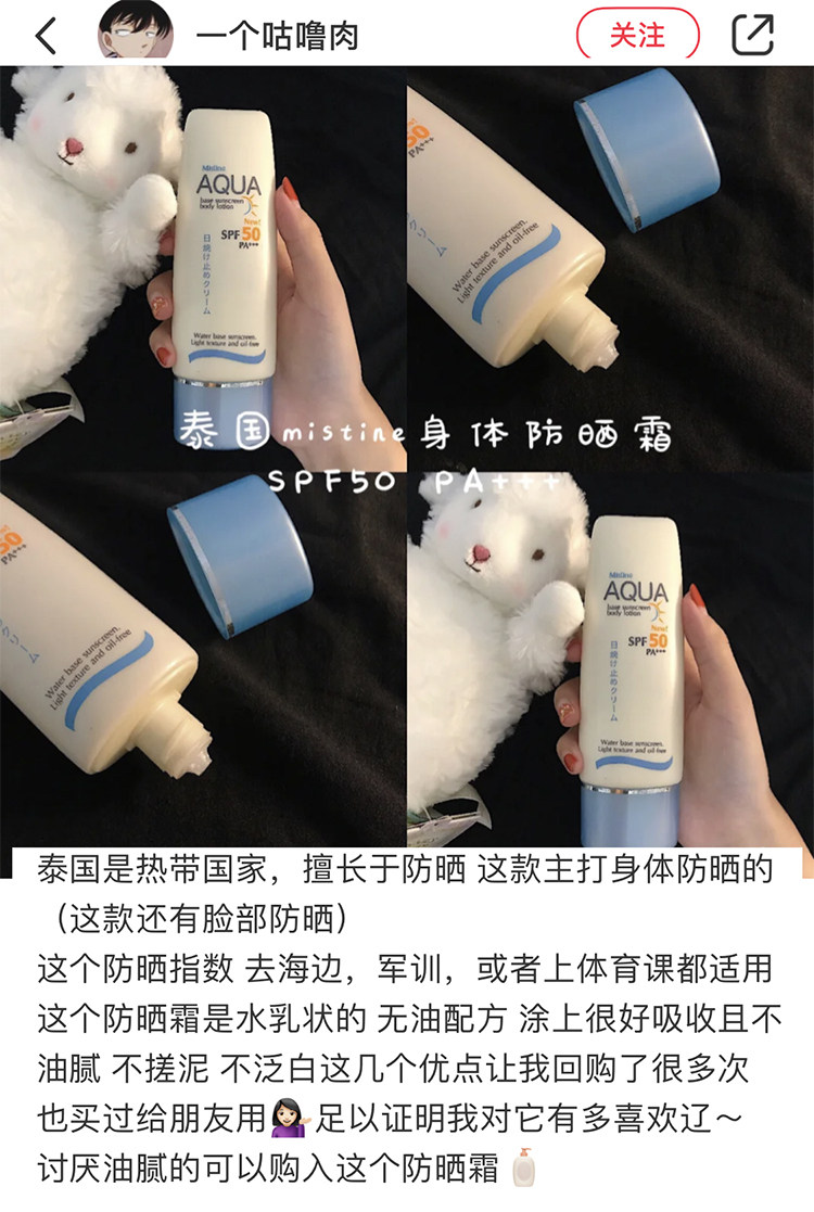 Old edition Refresh Thai Mistine Body Sunscreen AQUA Little Blue Hat Protection 70ml