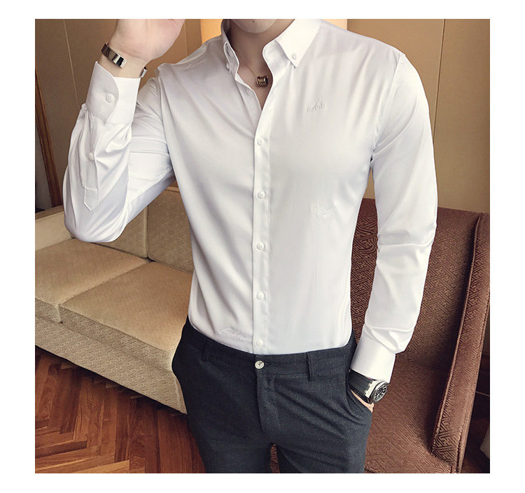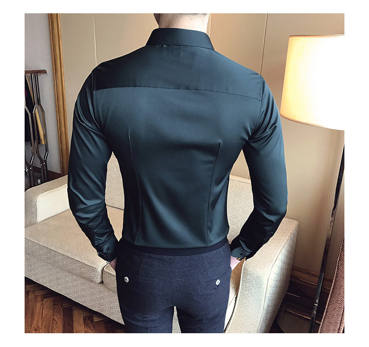 High-end pure color shirt jacket men's long sleeves Korean version trendy upscale rufflet-ups Ironing Business Casual Positive Dress Shirt