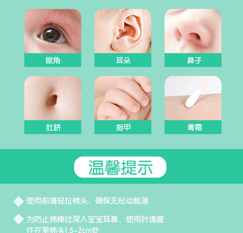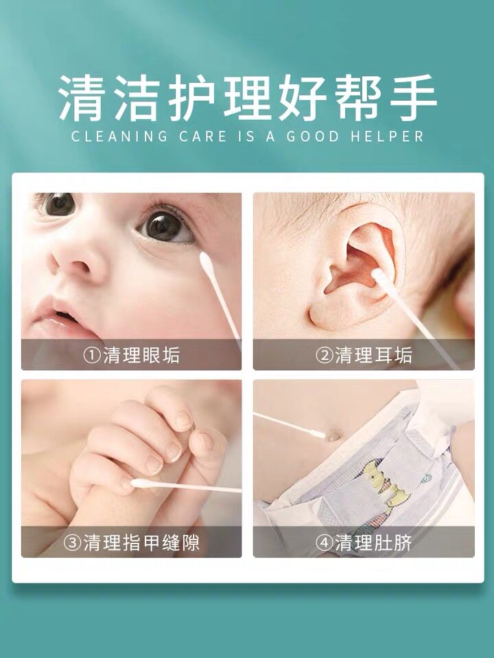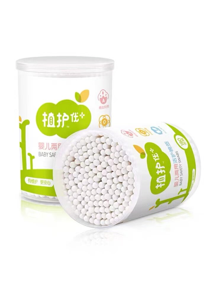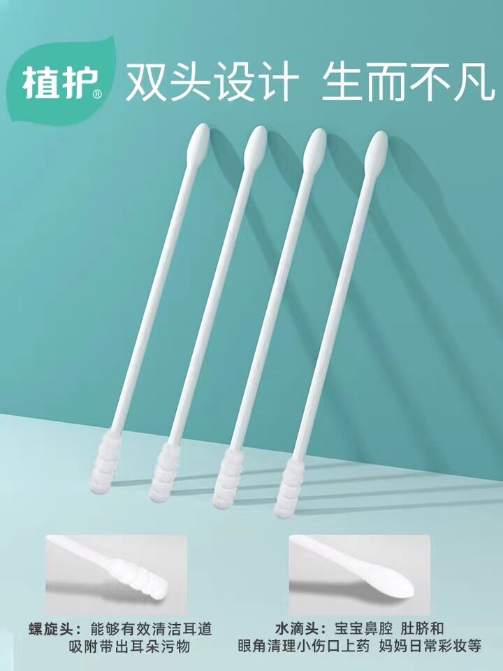Plant care baby dual-use cleaning cotton swab baby ear nose belly button lips oral double-headed thin-axis cotton swab spiral 5 barrels