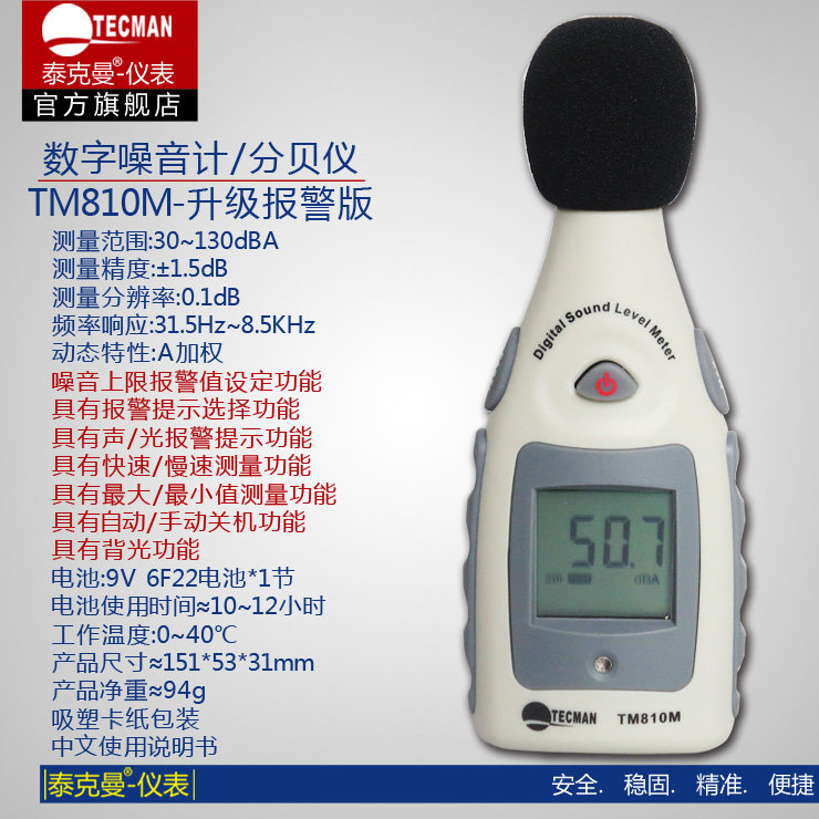 TM810M Tekman Noise Meter Decibel Meter Noise Detector Volume Sound Tester