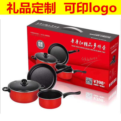 Gift pot set three-piece frying pan frying pan non-stick pan kitchen gift company bank will sell purchase gifts
