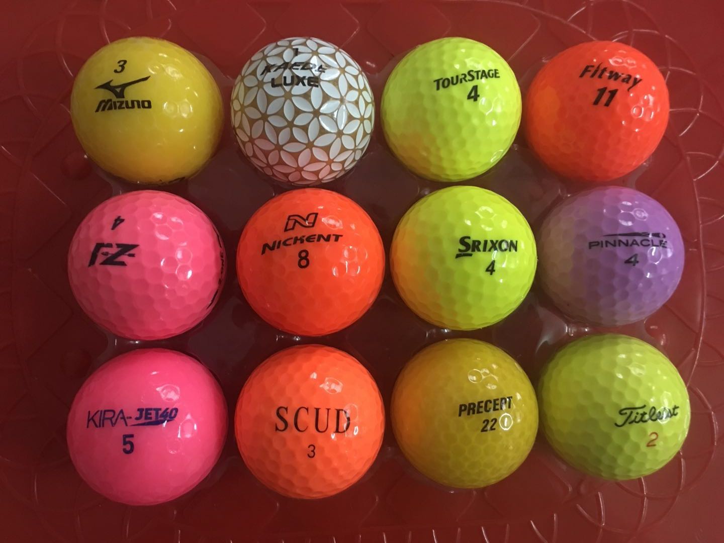 Golf color balls 12 packs, two packs, mixed quality of balls of various colors and brands, guaranteed end