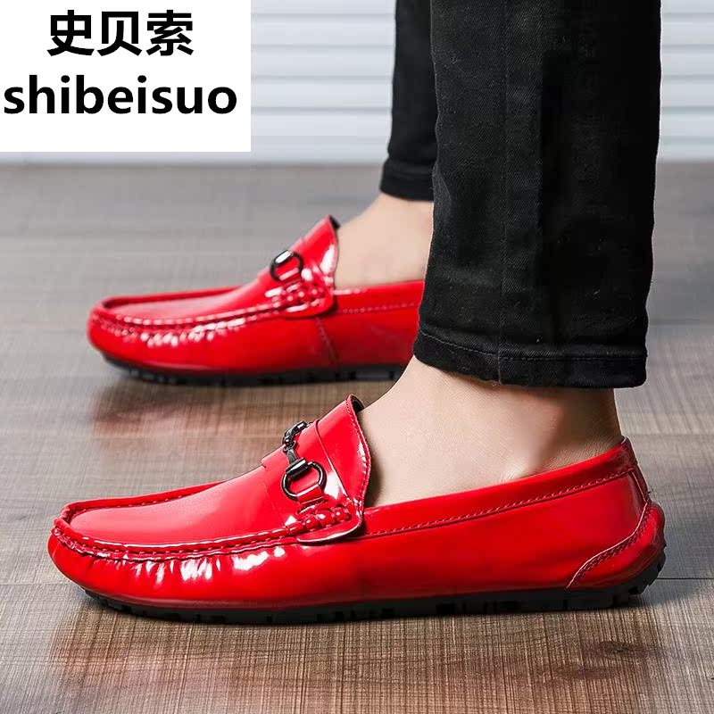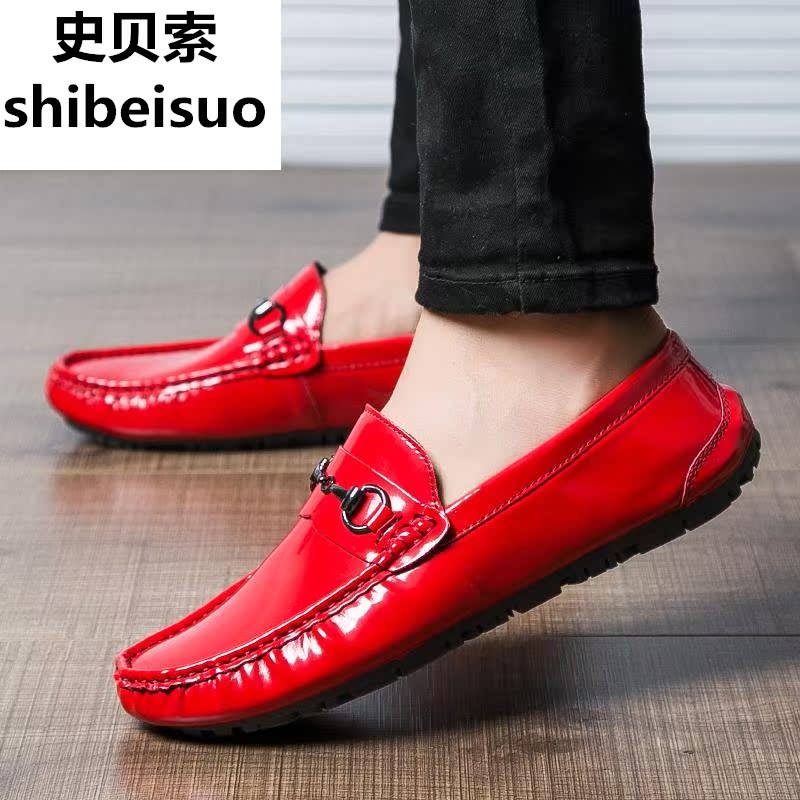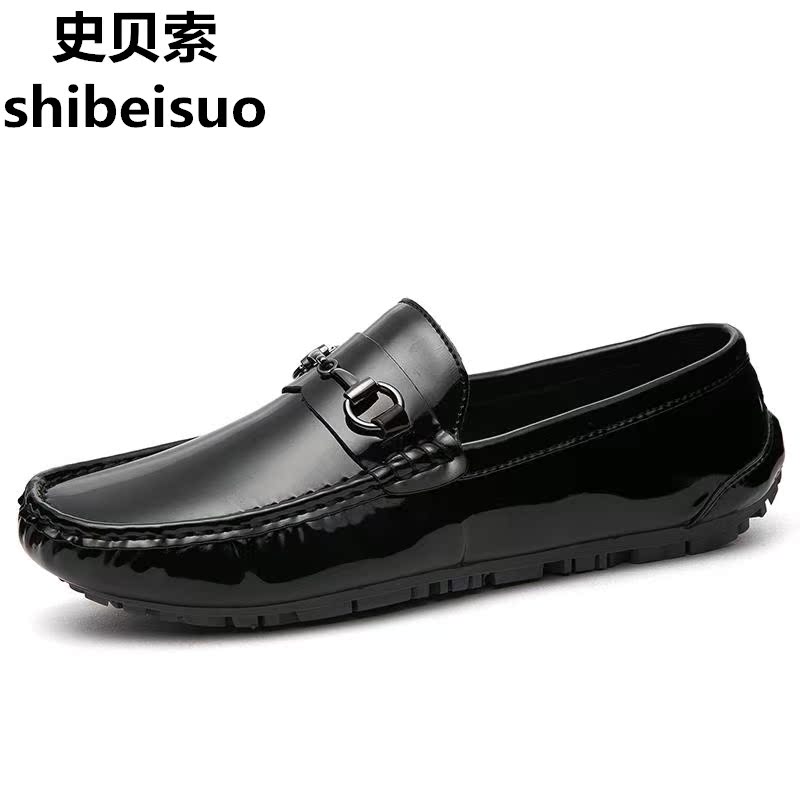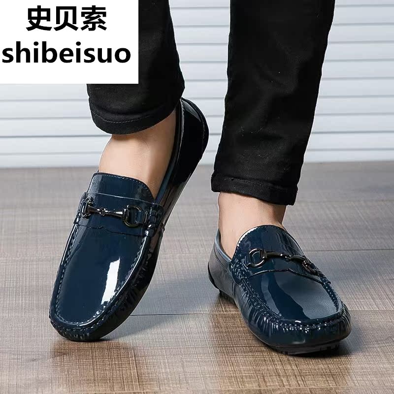 Epbezo Spring Lacquer Leather Bright Face Casual Leather Shoes Young Men All Black Bean Bean Shoes Unlacing Sloth Shoe Tide