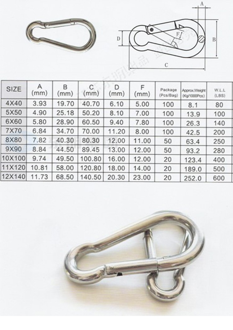 316 Stainless Steel Lock Buckle Standard Belt Nut Opening Ring Climbing Safety Carabiner M4-M12