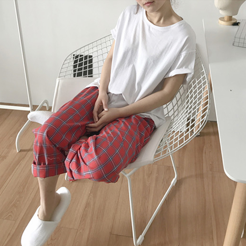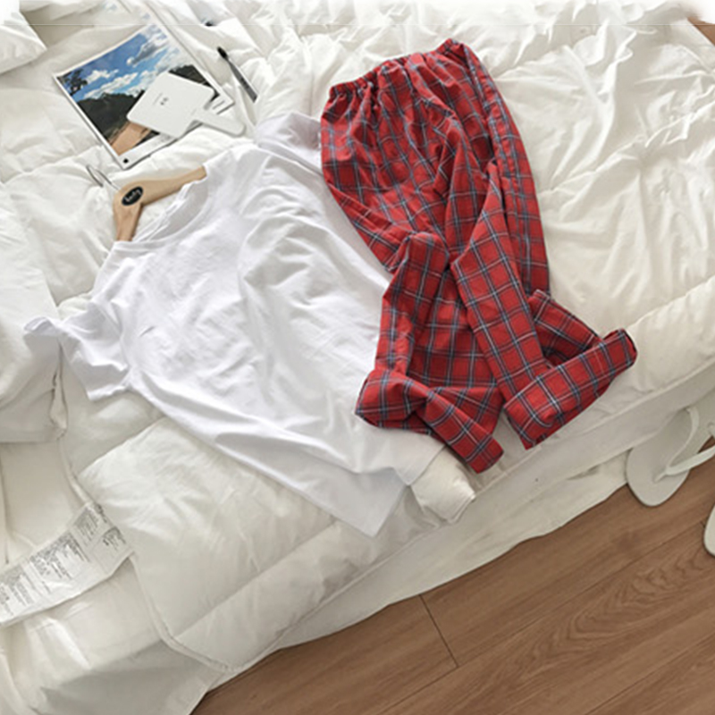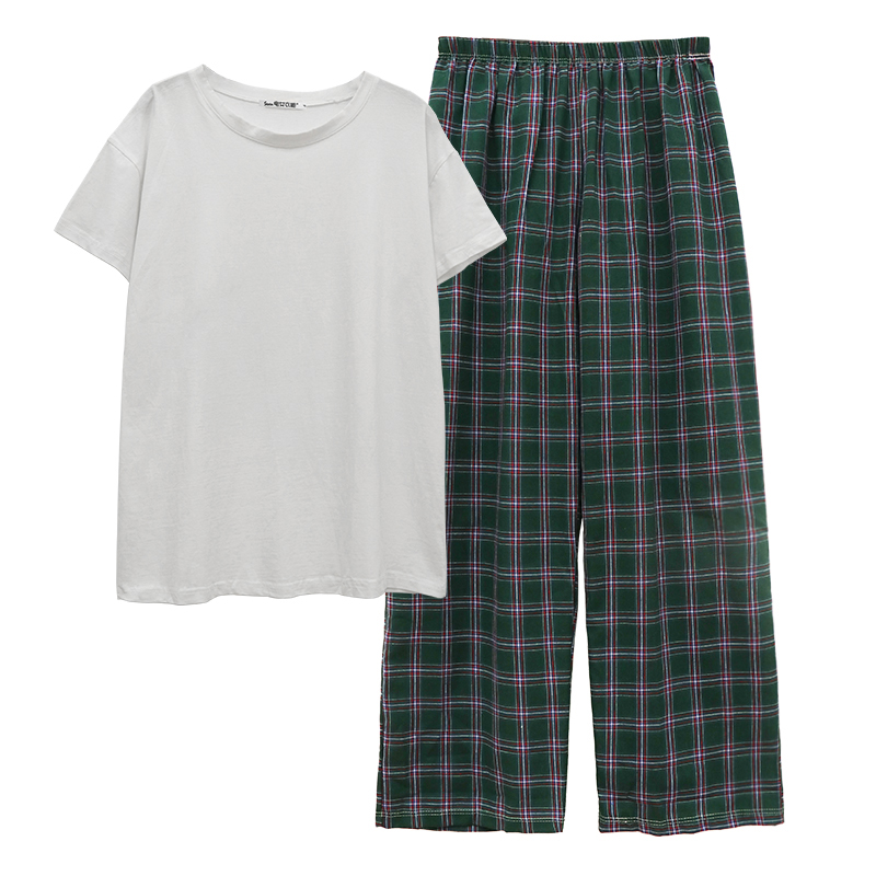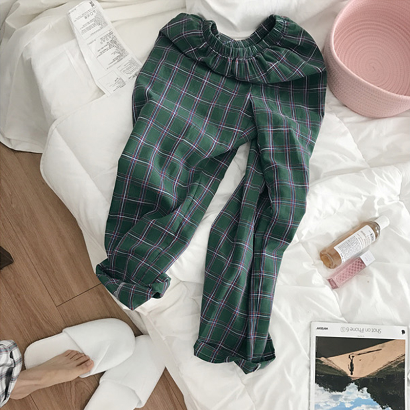 Korean Version Plaid Pure Cotton Pyjamas Women Summer Casual Sweets Plus Size Easy short sleeves Home Clothing Schoolgirl Suit
