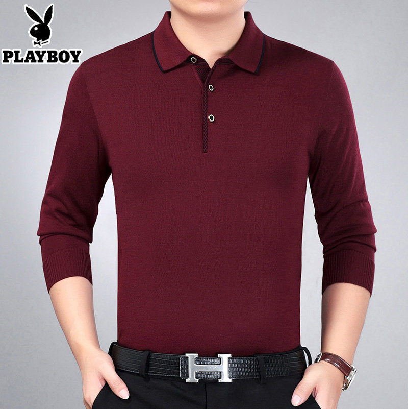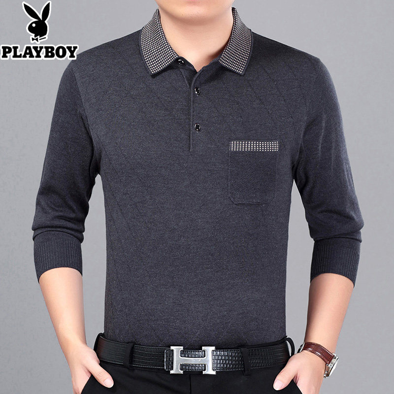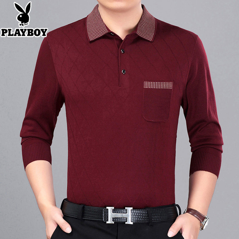 Playboy men's long-sleeved T-shirt middle-aged men's spring and autumn thin section dad wear middle-aged and elderly bottoming shirt top clothes