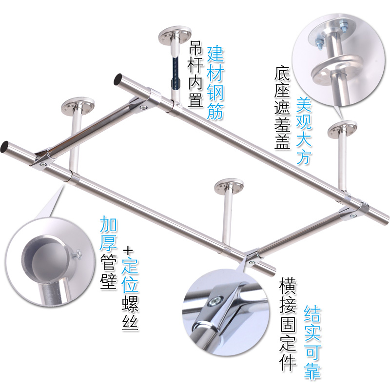 Clothes rail balcony stainless steel drying rack fixed clothes rod exterior wall clothes rail hanging seat hanging pole top cooling jacket