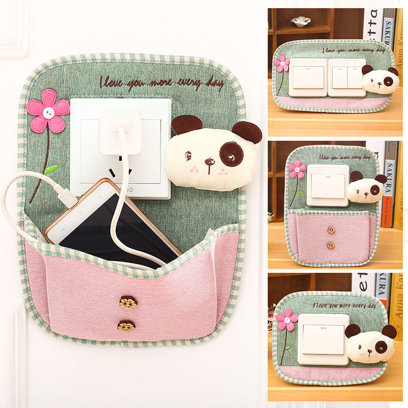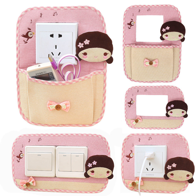 Cartoon cotton linen with pocket cloth art switch applique with cute bedroom decoration patch wall stickup with single open double switch switch protective sleeve