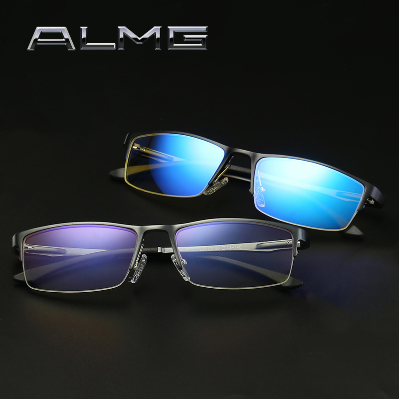 Flat mirror aluminum magnesium tide men's anti-fatigue anti-computer mobile phone radiation anti-blue light goggles business half-frame glasses