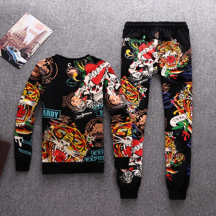 European station 2023 new men's suit in spring 2023 pure cotton tiger head printed with two - piece suit tide