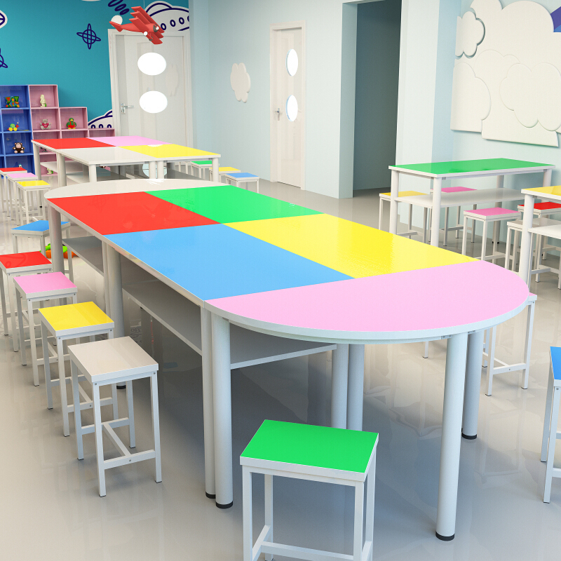 1200*600 straight table (double layer) 1200*600 semi-round table (single layer) 1200*600 semi-round table (double layer) with square stool chair 1200*600 straight table