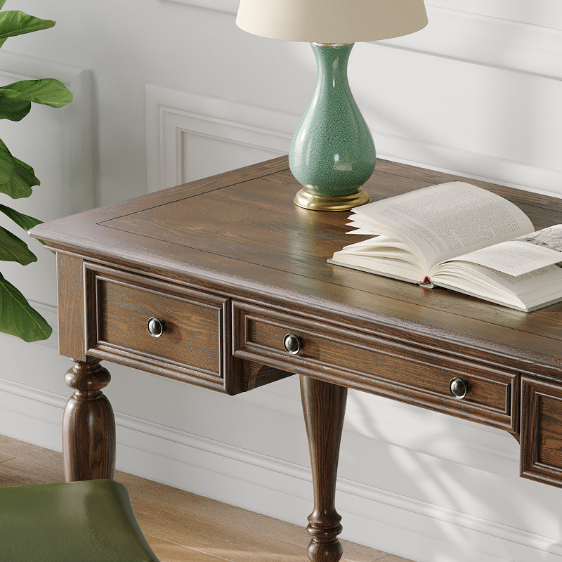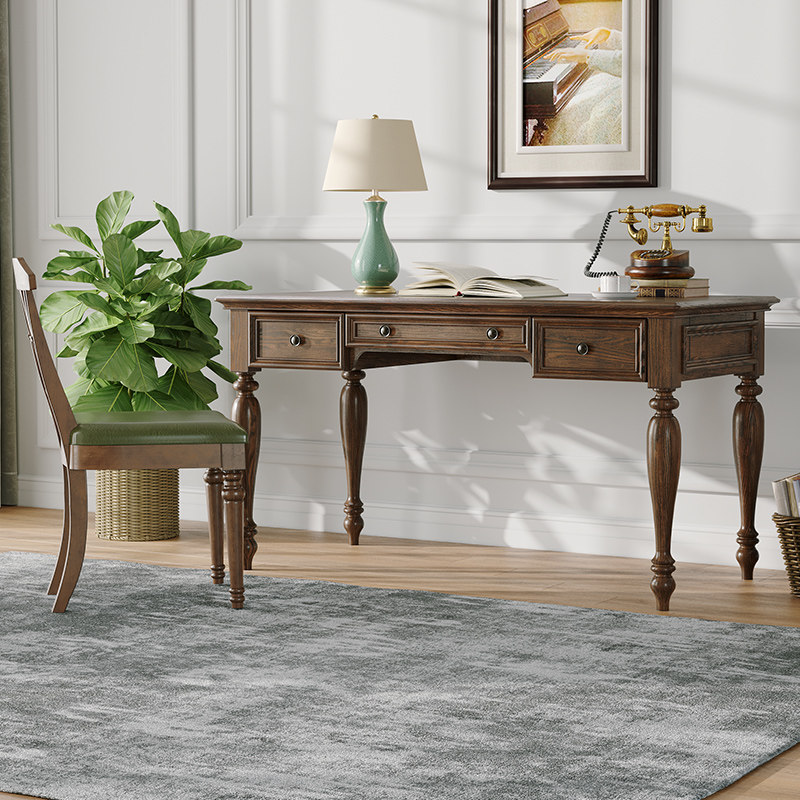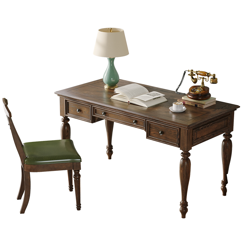 (99% whole solid wood) 1 2 m desk chair (rubber wood three pumping) (Classic section) 1 2 m desk green leather double fork chair (North American white wax wood net taste water-based paint) (99