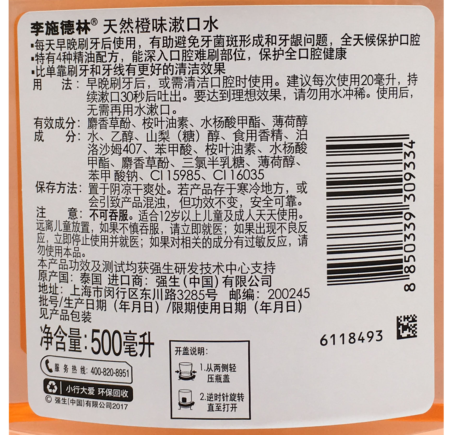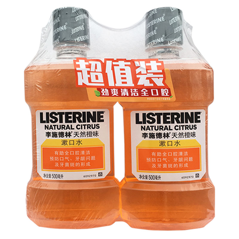 Listerine Mouthwash Natural Orange Flavor 500ml*2 bottles=1000ml Fresh breath to remove plaque