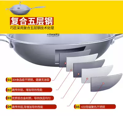 Clearance high quality double hi 304 non-coated wok household non-stick gas induction cooker universal 32cm