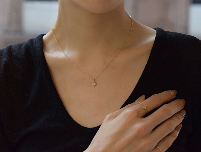 Japan direct mail Ginza Rim 18K Ginza protein stone diamond necklace
