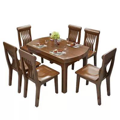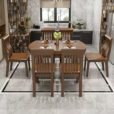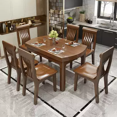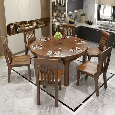 Walnut solid wood dining table square dual-purpose foldable telescopic dining table and chair combination modern Chinese round dining table