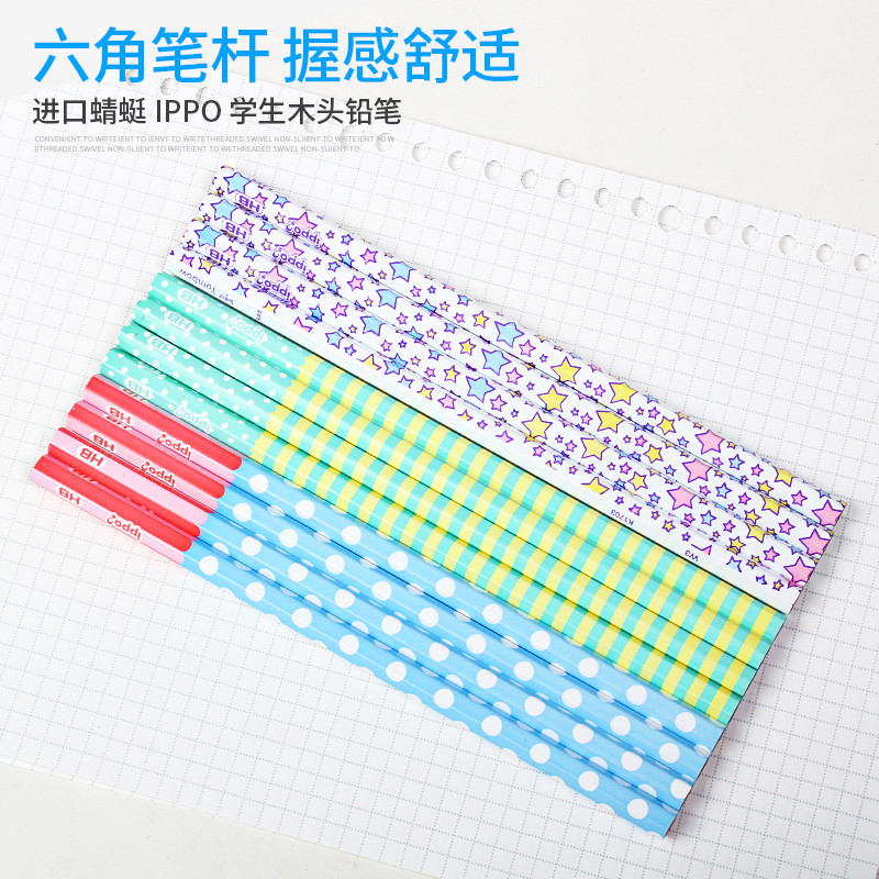 Japan TOMBOW Dragonfly IPPO Pupil Pencil HB 2B Children's Hexagon Pole Wood Writing Painting Sketch Pencil Cute Pattern Log Color Pole 12 Boxed