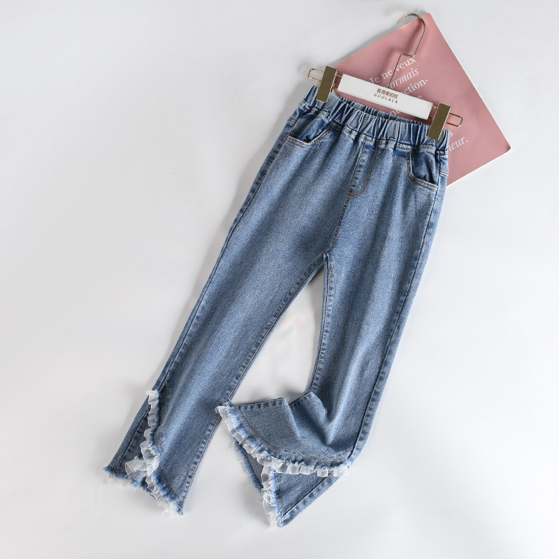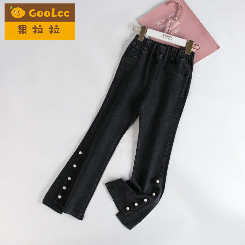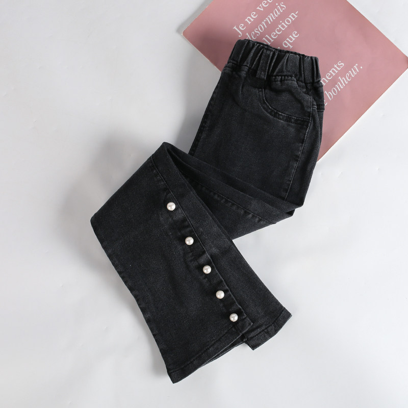 Summer light blue high elastic split pearl cropped trousers Black high and thin flared trousers Light blue leather standard high elastic flared trousers Blue side slit lace knot flared trousers Blue trousers pearl cigarette pants