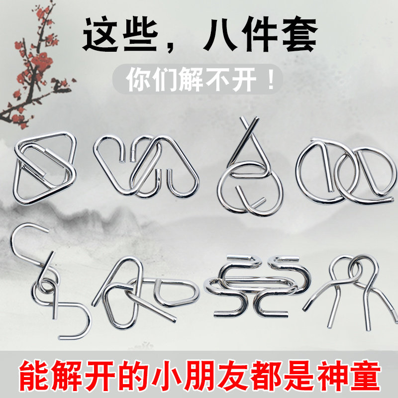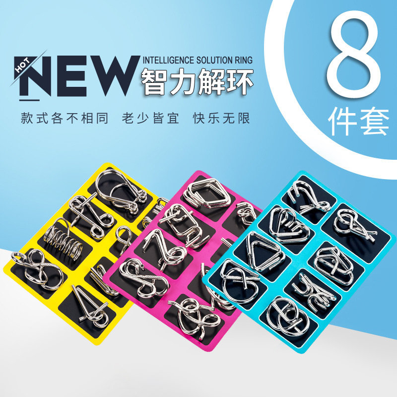 Eight-piece set of unclip intelligence unclip puzzle ring lock unclip student adult full set of iron ring unclip set toy
