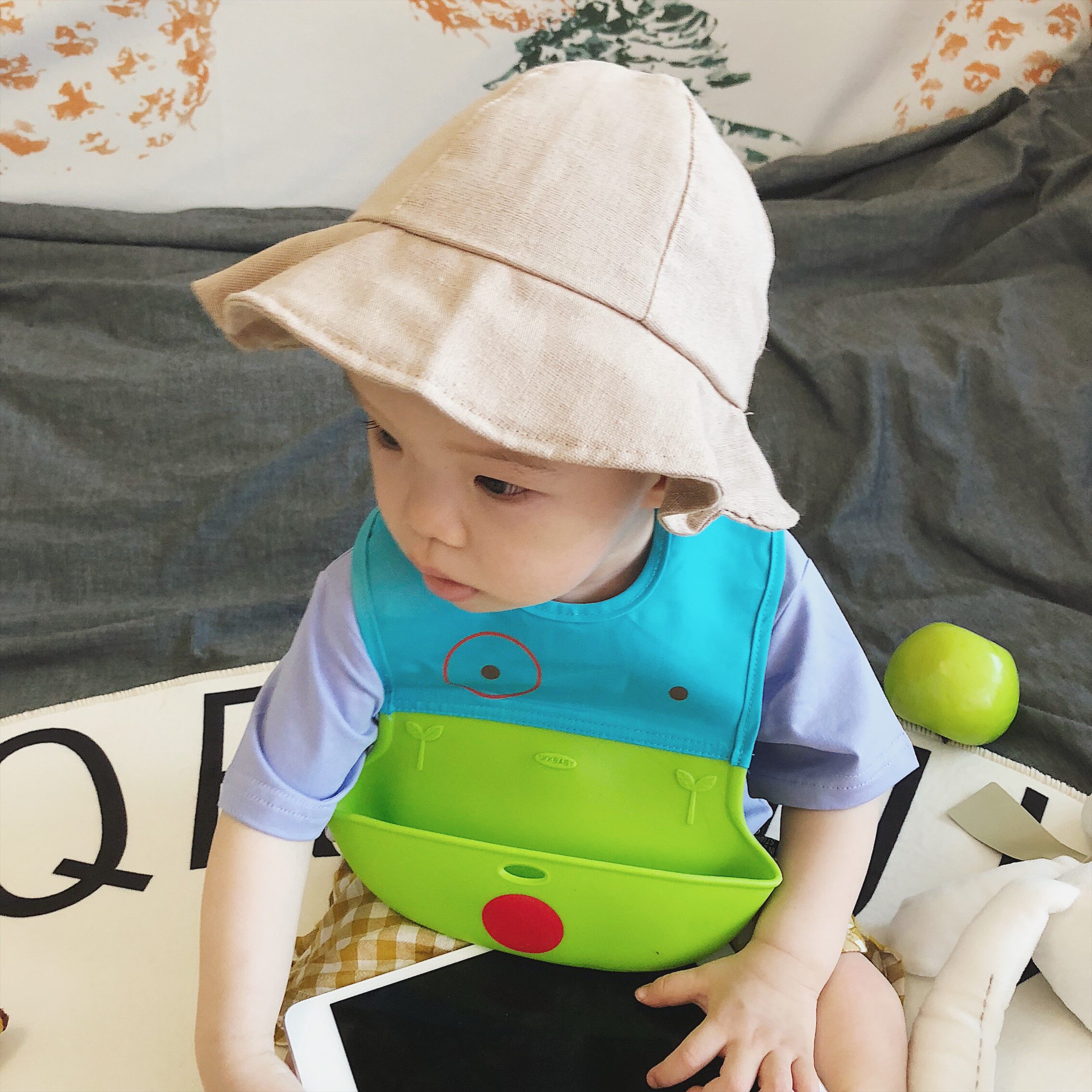 ins infant child clothing soft silicone rubber bib Cubic waterproof and leaky side food baby bib feeding with a water towel