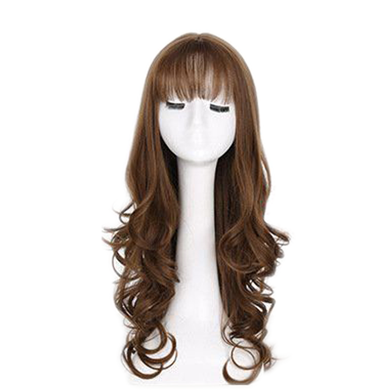 Wig female long hair curly hair round face oblique bangs Full hair set adult big waves ol fashion model bar business
