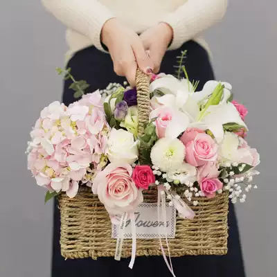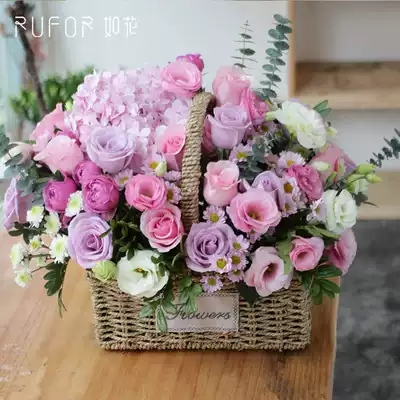 19 flowers mixed and matched 3 sunflower portable flower basket Purple rose mixed and matched portable flower basket Pink beauty Korean hug bucket Pink hydrangea rose mixed and matched hug bucket Diana ping-pong chrysanthemum portable flower