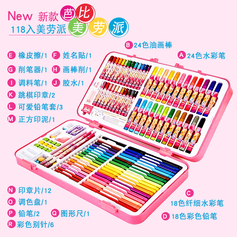 Children's watercolor pen set gift box kindergarten hand painting color pen set 118 colors 58 colors 78 colors painting graffiti watercolor brush color pen Barbie watercolor brush primary school students color pen