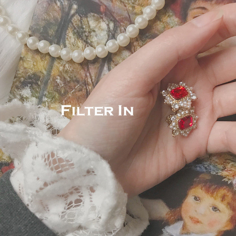 With filter|Retro Palace Baroque Antique Vintage Elegant Ruby Stud Earrings Without Pierced Ear Clips