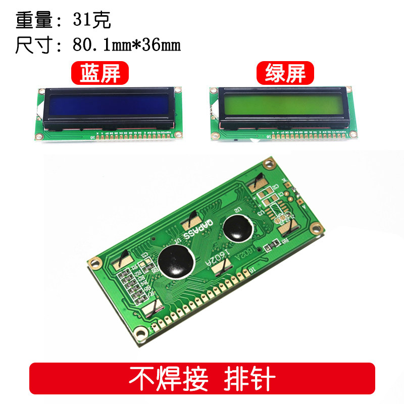 LCD1602 LCD screen blue screen green screen with backlight LCD display 1602A LCD screen with word library 5V